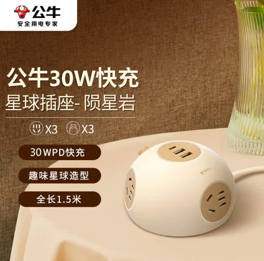 首页 > 建筑建材 > 开关插座 > 公牛(BULL)30W PD快充星球星际插座/插线板/插排/排插/拖线板 半球型 3个五孔 3个USB GNV-U1303Q 陨星岩 (zhyghf_221711959)SKU:yzwhyp884945