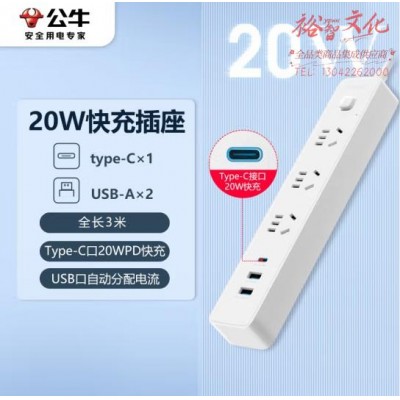 首页 > 建筑建材 > 开关插座 > 公牛(BULL)20W PD苹果快充插座/插线板/插排/接线板 Type-c口 USB口 3插孔 全长3米白色 GNV-UU4203 (zhyghf_221712002)SKU:yzwhyp884971