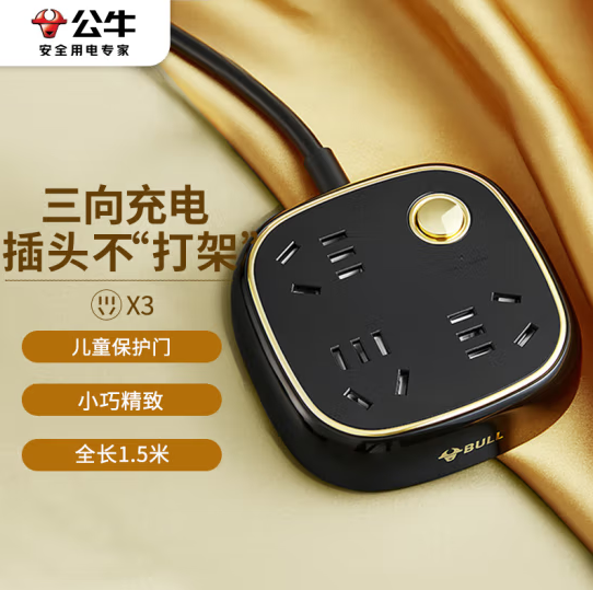 公牛(BULL)GN-R6030 骑士黑 复古插座 3位总控 全长1.5米 (zhyghf_221712080)SKU:yzwhyp885012