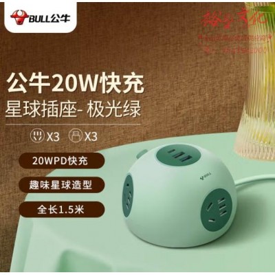 首页 > 建筑建材 > 开关插座 > 公牛(BULL)20W PD苹果快充星球插座/插线板/插排/排插/拖线板 半球型 3个五孔 3个USB GNV-U1203Q 极光绿 (zhyghf_221711986)SKU:yzwhyp885092