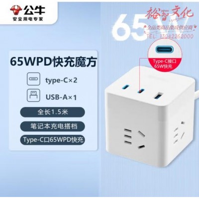 首页 > 建筑建材 > 开关插座 > 公牛(BULL)65W PD苹果快充魔方插座/插线板/插排/接线板 Type-c USB 3插孔 全长1.5米白色GNV-UU3653 (zhyghf_221711911)SKU:yzwhyp885146