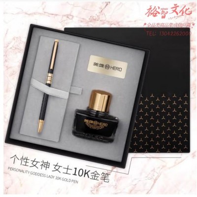 英雄(HERO)钢笔女士礼盒年会奖品套装10K金笔尖钢笔墨水笔细款明尖H703 亮黑色F尖 (zhyghf_23099629)SKU:yzwhyp885301