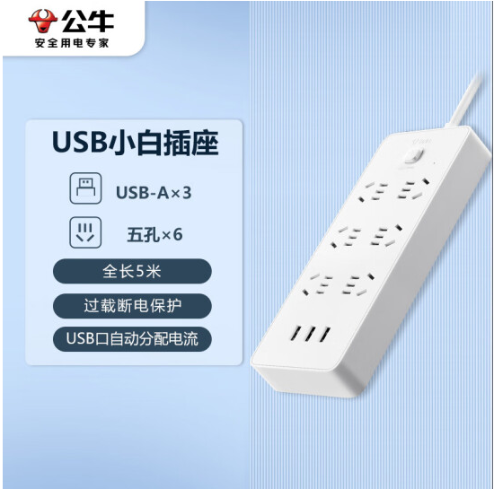 首页 > 建筑建材 > 开关插座 > 公牛(BULL)超功率保护新国标公牛小白USB排插 GNV-UUN153 3usb接口 6孔全长5米 (zhyghf_221711945)SKU:yzwhyp885801