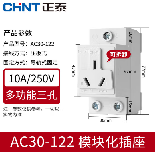 正泰AC30-122 插座模数化空开导轨插座箱配电 多功能三孔 10A(zhyghf_221713626)SKU:yzwhyp885885