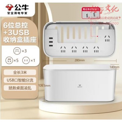 公牛(BULL)带USB新国标收纳盒延长线插座/6位全长3米 GN-F2151U (zhyghf_221711936)SKU:yzwhyp886416