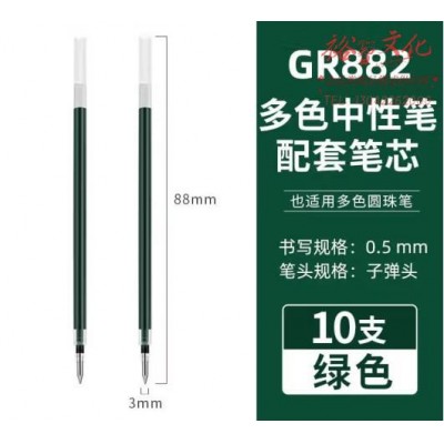 爱好(AIHAO)四色中性笔替芯黑红蓝绿子弹头0.5mm多色原珠笔芯绿色10支/袋 gr882 (zhyghf_23099970)SKU:yzwhyp886643
