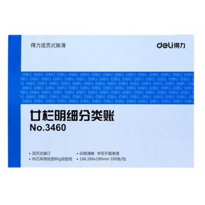 得力3460廿栏明细分类账(蓝)-100页-16K(本)