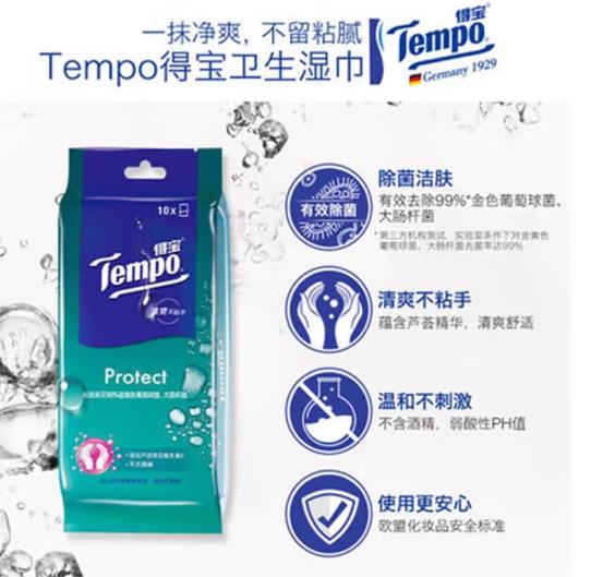 得宝 T3003 卫生湿巾 单片装10片/包 20包/袋SKU:yzwhyp888272