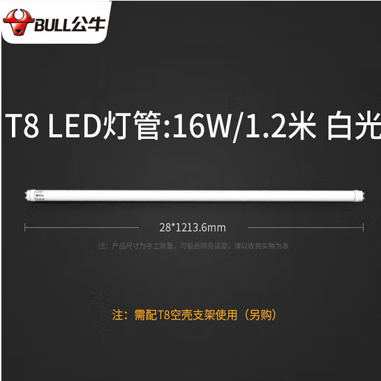 公牛LED灯管 T8- 1.2米 16W 日光灯管 6500K(25支/箱) (zhyghf_221712360)SKU:yzwhyp889221