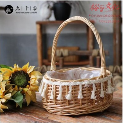 首页 > 建筑建材 > 装饰材料 > 九千谷9035 柳编收纳筐创意手工田园风手提小花篮藤编草编野餐编织插花摆件装饰鸡蛋篮子 圆形20*10*24cm (zhyghf_23096307)SKU:yzwhyp892161