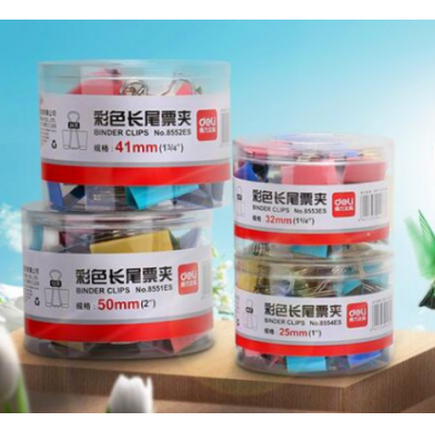 得力8555ES彩色长尾票夹筒装(混)(40只/筒)