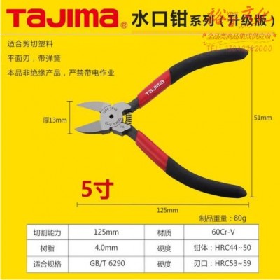 首页 > 建筑建材 > 手动工具 > 田岛(TAJIMA)水口钳5寸6寸7寸斜口钳电子钳优质合金钢平面水口钳直角平口钳子 水口钳 2047(zhyghf_23093688)SKU:yzwhyp893970