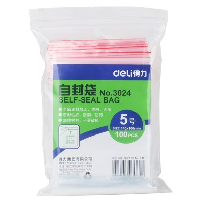 得力3024自封袋(透明)-5号(100个/包)140x100mm0.04mm