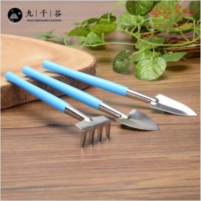 九千谷3200 园艺工具3件套蓝色 小铲子多肉盆栽耙锹不锈钢迷你工具套装盆栽园艺种花工具套装 (zhyghf_23096009)SKU:yzwhyp894509