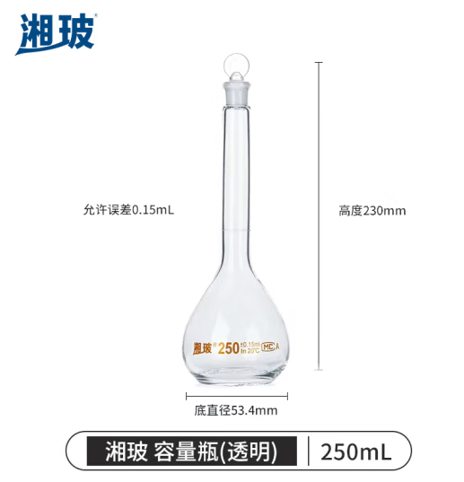 首页 > 仪器仪表 > 生物、医学样品制备设备 > 比克曼生物 湘玻 容量瓶玻璃加厚定量瓶定容瓶A级可过检透明棕色磨口具塞耐高温实验室 【透明】250mL 1个 (zhyghf_221720630)SKU:yzwhyp894753