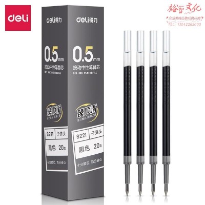 得力(deli)臻顺滑按动中性笔芯 签字笔水笔替芯 0.5mm子弹头20支/盒S221 黑色(zhyghf_800501077)SKU:yzwhyp895362