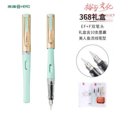 首页 > 办公用品 > 文具 > 英雄(HERO)钢笔368美人鱼 绿色 EF F 学生签字笔(附加墨囊*10)铱金礼盒年会奖品套装 (zhyghf_23099519)SKU:yzwhyp897977