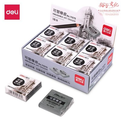 得力(deli)18块可塑美术素描橡皮擦 灰色柔软绘图橡皮 71070(zhyghf_950400013)SKU:yzwhyp903131