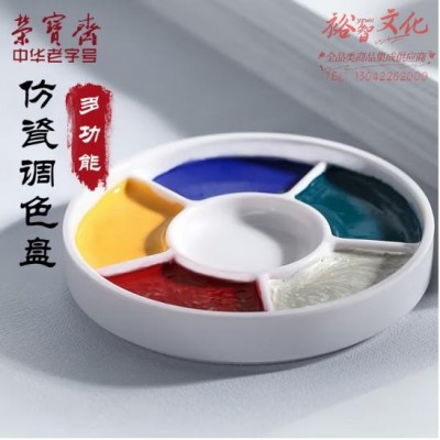荣宝斋 文房四宝 小墨盒国画颜料调色盘笔添 虚中 仿瓷调色盘 (zhyghf_23097020)SKU:yzwhyp903555