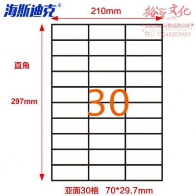 首页 > 办公用品 > 文具 > 海斯迪克 HKLY-97 亚光a4不干胶 库房货位打印纸 标签纸 30格70*29.7mm 80张直角 (zhyghf_221717315)SKU:yzwhyp903715