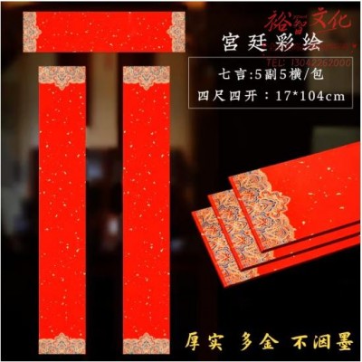 首页 > 办公用品 > 文具 > 善琏湖笔 空白对联手写春联纸万年红宣纸对联纸大红纸毛笔字书法作品创作半生半熟蜡染宣纸七言 宫廷彩绘17*104CM 5副七言 (zhyghf_23096716)SKU:yzwhyp903899