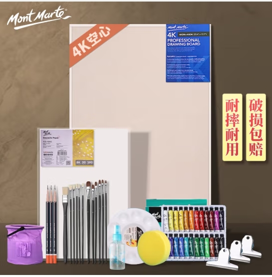 首页 > 办公用品 > 文具 > 蒙玛特(Mont Marte)4k画板 水粉颜料套装美术空心画板铅笔水粉纸水粉笔调色盘水桶夹子喷壶海绵SX-WD-TZ-027 (zhyghf_21101114)SKU:yzwhyp903969