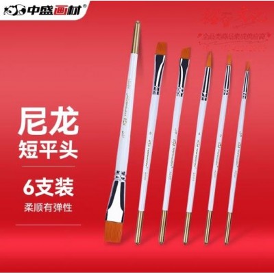 中盛画材(transon)短头尼龙画笔水粉画笔套装水彩画笔排笔美术生平头圆头色彩丙烯油画颜料笔 (zhyghf_21101530)SKU:yzwhyp904115