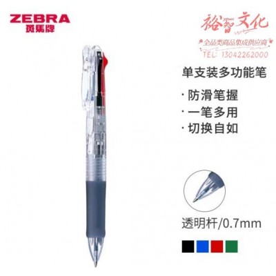 斑马牌 (ZEBRA)按动多色多功能圆珠笔 0.7mm子弹头四色原子笔学生 B4A3 透明色杆 (zhyghf_23099177)SKU:yzwhyp904189