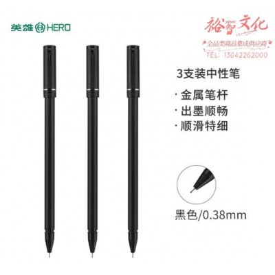 英雄(HERO)中性笔A206 黑色金属0.38mm学生文具中性笔 签字笔 水笔三支装 (zhyghf_23099363)SKU:yzwhyp904238