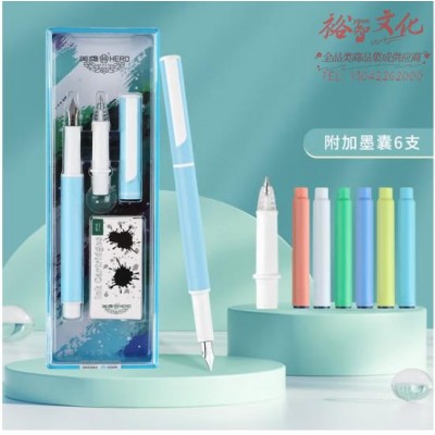 首页 > 办公用品 > 文具 > 英雄(HERO)钢笔 E602组合装 铱金男女学生初学练字三年级签字钢笔(EF 走珠笔 6支墨囊)蓝色 (zhyghf_23099461)SKU:yzwhyp904273