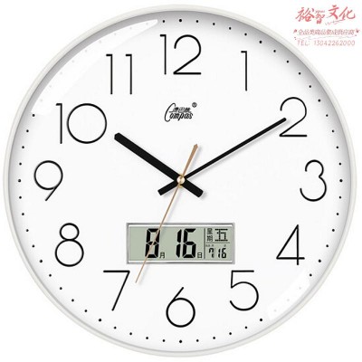 康巴丝(COMPAS)挂钟简约钟表客厅石英钟表挂墙卧室时钟3D立体日历挂表 C3220Y 白色(zhyghf_980400062)SKU:yzwhyp904648