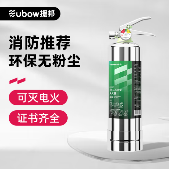 首页 > 消防设备 > 消防灭火装备 > 援邦 不锈钢水基灭火器980ml 车载车用家用灭火器 可灭电火 MSJ980 (zhyghf_221723176)SKU:yzwhyp904683