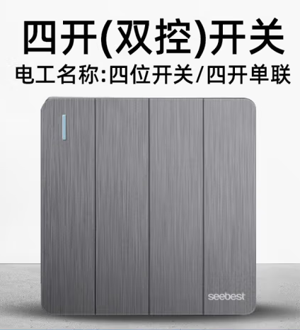 视贝(SEEBEST)四开(双控)开关 开关面板拉丝灰墙开大板智美系列 (zhyghf_221723880)SKU:yzwhyp907938