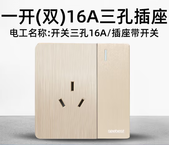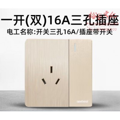 视贝(SEEBEST)一开(双)16A三孔插座 开关面板高端拉丝金大板香槟金系列 (zhyghf_221723935)SKU:yzwhyp908588