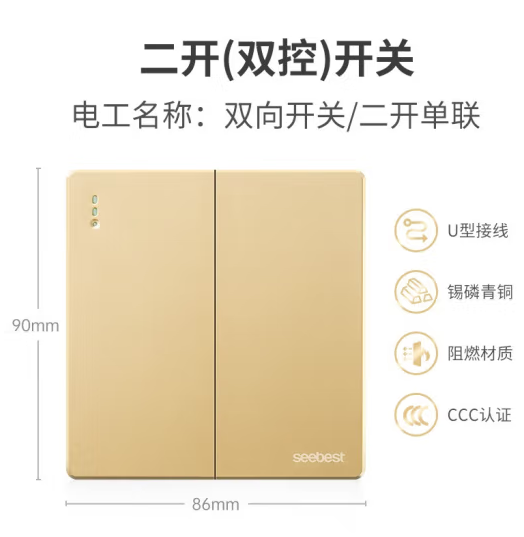 视贝(SEEBEST)二开双控 开关插座墙壁开关金色系列 (zhyghf_221723946)SKU:yzwhyp908593