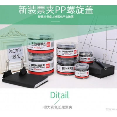 得力(deli)长尾夹 24只32mm黑色长尾夹票夹 金属长尾夹燕尾夹票据文件夹子 办公用品 中号8563长尾夹