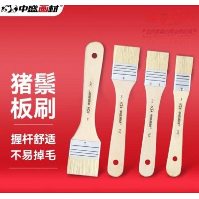 中盛画材 4把装猪鬃板刷画刷短杆油画水粉丙烯油画刷子美术手绘墙绘底刷笔刷水粉丙烯颜料用底纹刷墙 (zhyghf_21101301)SKU:yzwhyp911137
