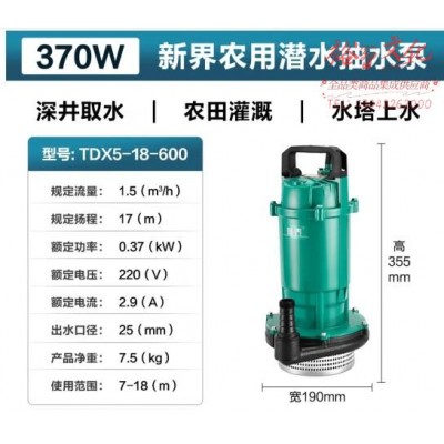 首页 > 建筑建材 > 电动工具 > 新界抽水泵潜水泵家用大流量高扬程农用灌溉清水泵水井水塔220V 1.5方17米扬程370W(1寸) (zhyghf_23001146)SKU:yzwhyp913250