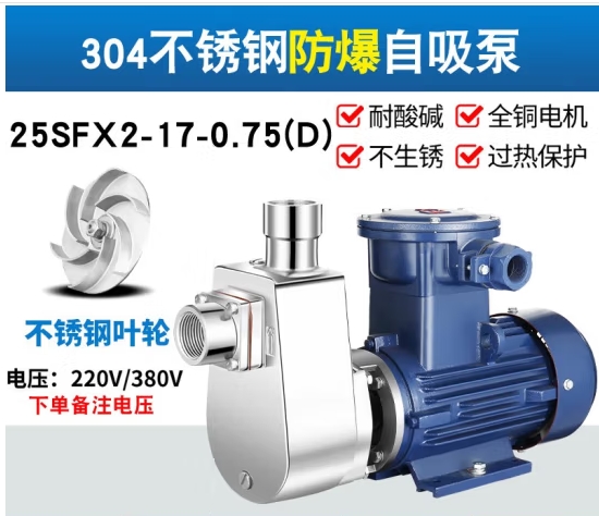 首页 > 建筑建材 > 电动工具 > 上海人民304不锈钢化工自吸泵耐酸碱腐蚀防爆离心化工泵耐高温小型管道抽水泵 不锈钢防爆自吸泵750瓦1寸 (zhyghf_23001180)SKU:yzwhyp913435