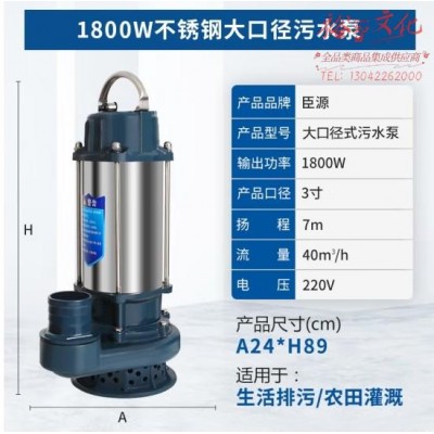 臣源污水泵220V家用井用潜水泵大口径无堵塞大流量农用排污泵 (zhyghf_23001303)SKU:yzwhyp914086