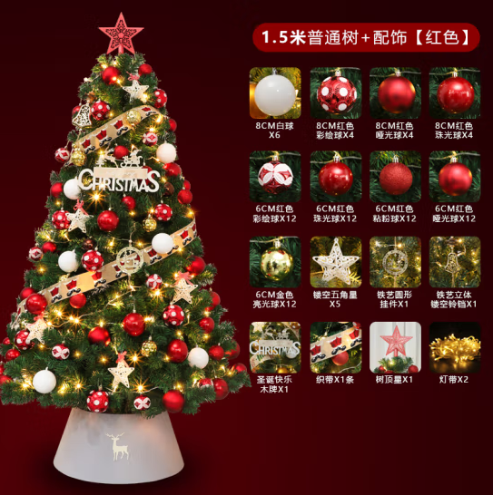 首页 > 建筑建材 > 装饰材料 > 米魁 圣诞树装饰品商场酒店节日氛围diy家用大型豪华加密圣诞节发光 1.5米加密树 配饰(红色) (zhyghf_221718314)SKU:yzwhyp915179