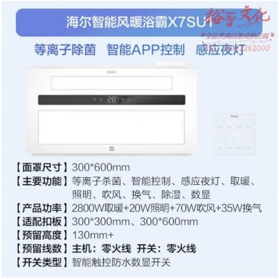 海尔浴霸智能风暖浴霸数显暖风机浴室排气扇照明一体集成吊顶X7SU1(zhyghf_23094333)SKU:yzwhyp915869