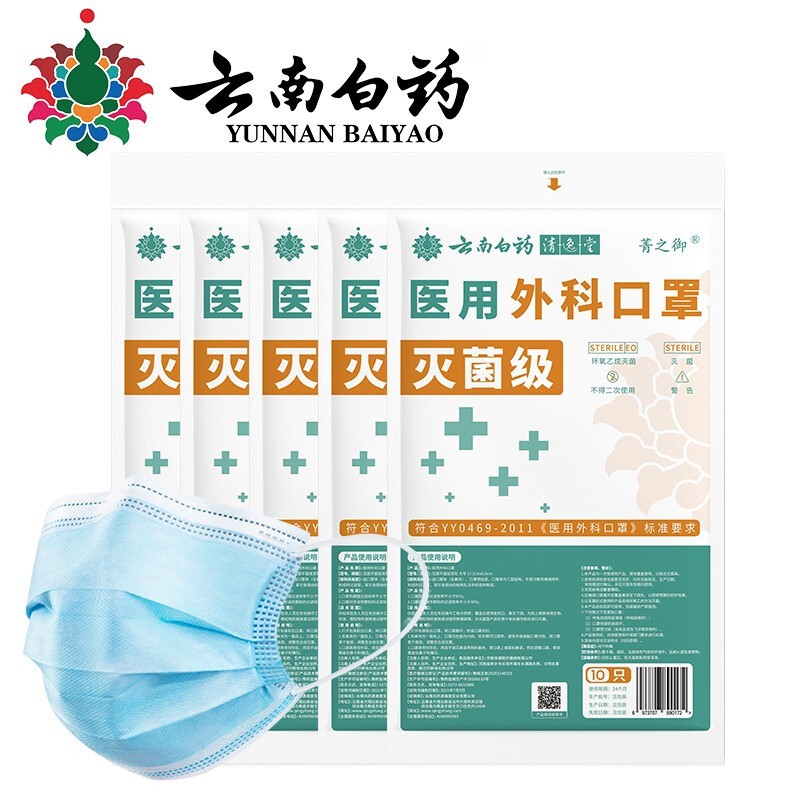 云南 50只(5袋)灭菌型 口罩三层防护含熔喷布10只一袋SKU:yzwhyp916467