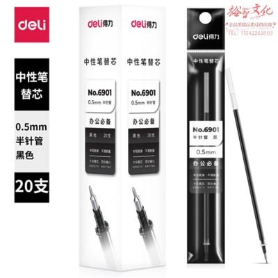 得力 6901中性笔芯0.5mm半针管(黑、红)20支/盒 单色单盒装 颜色随机(SKU:yzwhyp9000218