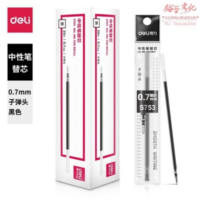 得力(deli) S753 0.7mm子弹头中性笔芯(黑色) 20支/盒 60支装(SKU:yzwhyp9000217