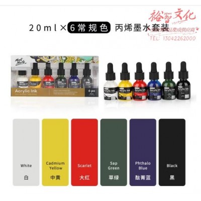 蒙玛特(Mont Marte)丙烯颜料 丙烯墨水套装防水手绘diy涂鸦流体画马克笔补充液 6色20ml常规PMNK0001 (SKU:yzwhyp917061