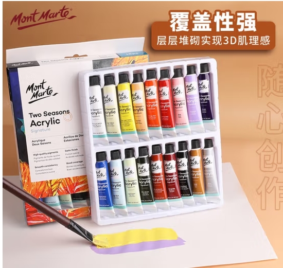 蒙玛特(Mont Marte)丙烯颜料18色12ml 丙烯颜料套装丙烯绘画颜料儿童diy画画涂鸦手绘墙绘防水颜料PMHS0002 (SKU:yzwhyp917065