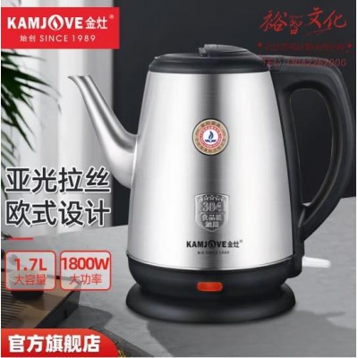 金灶(KAMJOVE)1.7L大容量家用电热水壶 304不锈钢烧水壶 全钢电水壶长嘴电茶壶T-65A 亚光拉丝(SKU:yzwhyp919194