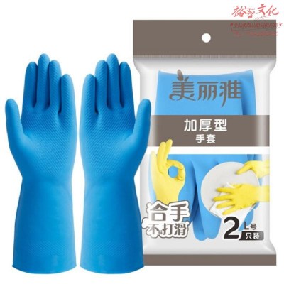 美丽雅加厚耐磨乳胶手套洗碗手套防水家用厨房刷碗洗衣服洗菜贴手清洁耐用家务家务清洁手套大号(L号颜色随机)(SKU:yzwhyp919607