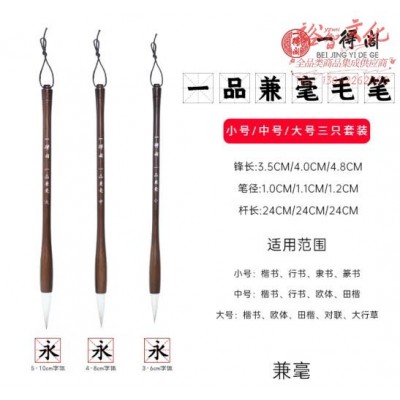 一得阁兼毫毛笔狼羊兼毫中大楷书法国画篆隶楷行书专用毛笔文房四宝笔墨纸砚一品兼毫大中小三支套装 (SKU:yzwhyp920141